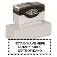 The MaxLight IDAHO Pre-Inked Notary stamp conveniently creates thousands of crisp, clean stamp impressions time after time. The stamp shall contain the notary’s name as it appears on the certificate of commission, the words “Notary Public and State of IDAHO”, and the commission number. IDAHO notary stamps come standard with black ink. Our IDAHO notary stamps meet all state guidelines.