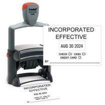 Large Custom Text 2 lines on Top 3 line on Bottom Dater Stamp is easy to use. With custom text and the date month year on a Trodat Professional self inking stamp